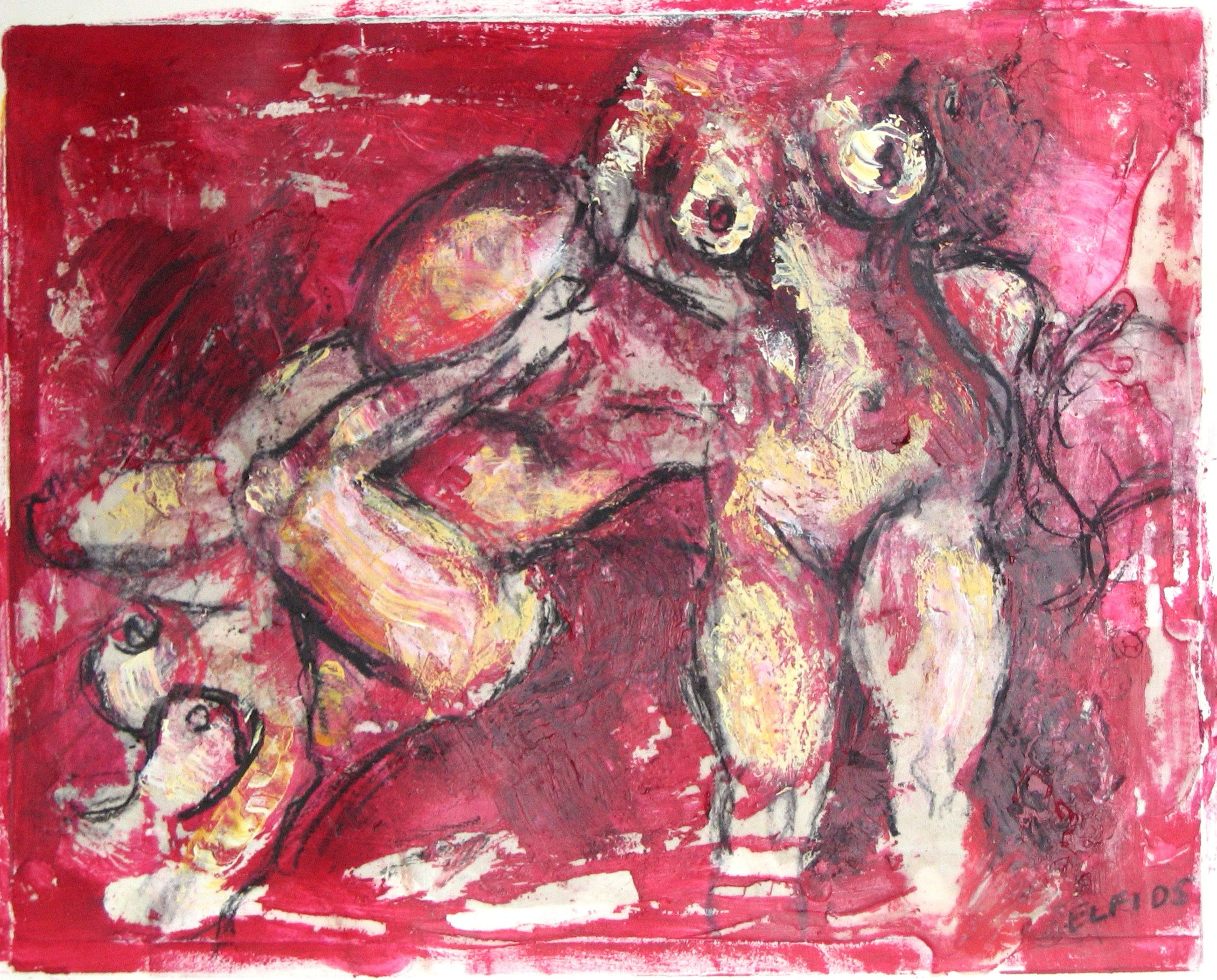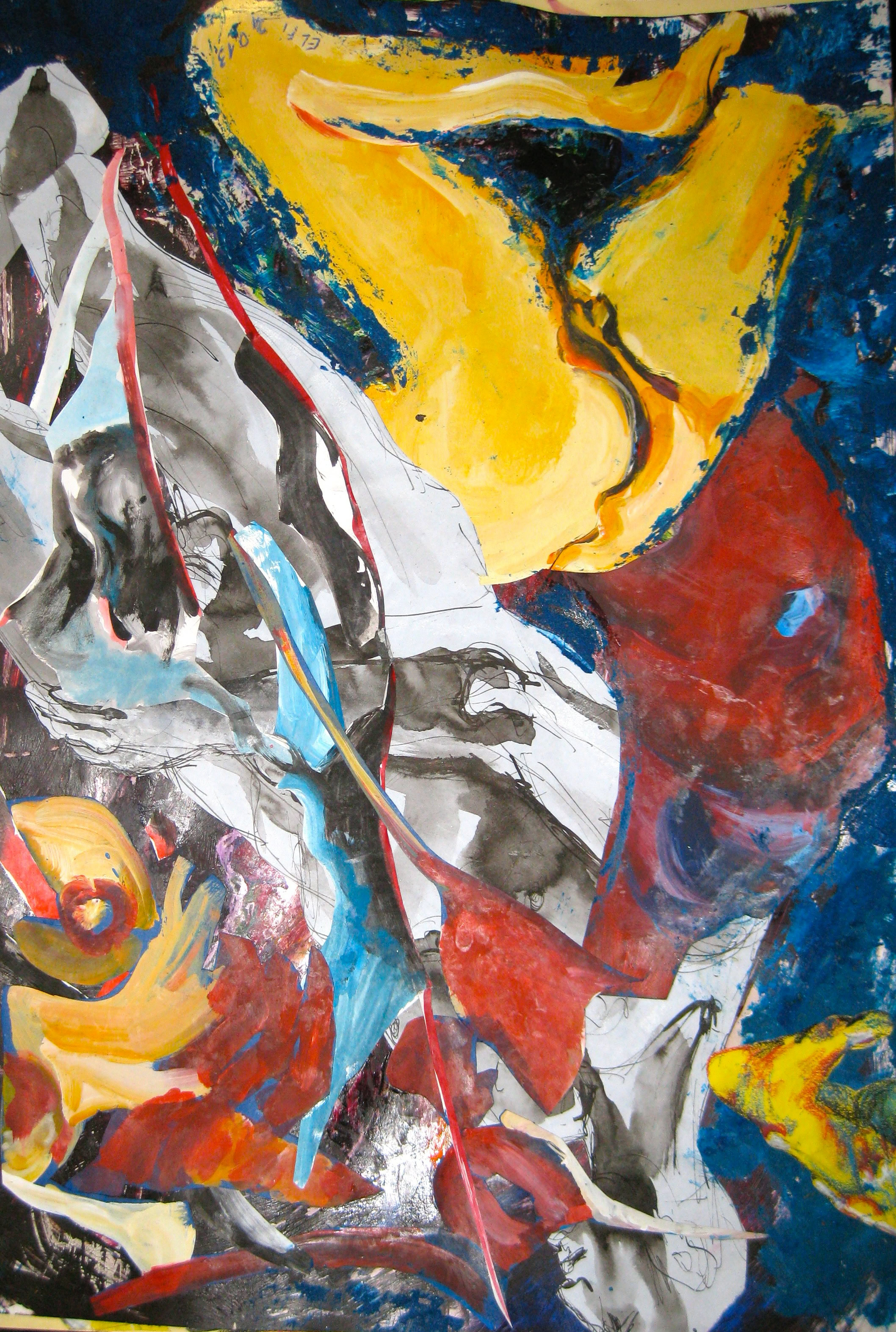 Drucktechniken/Acryl/Pastellkreide/Collagen